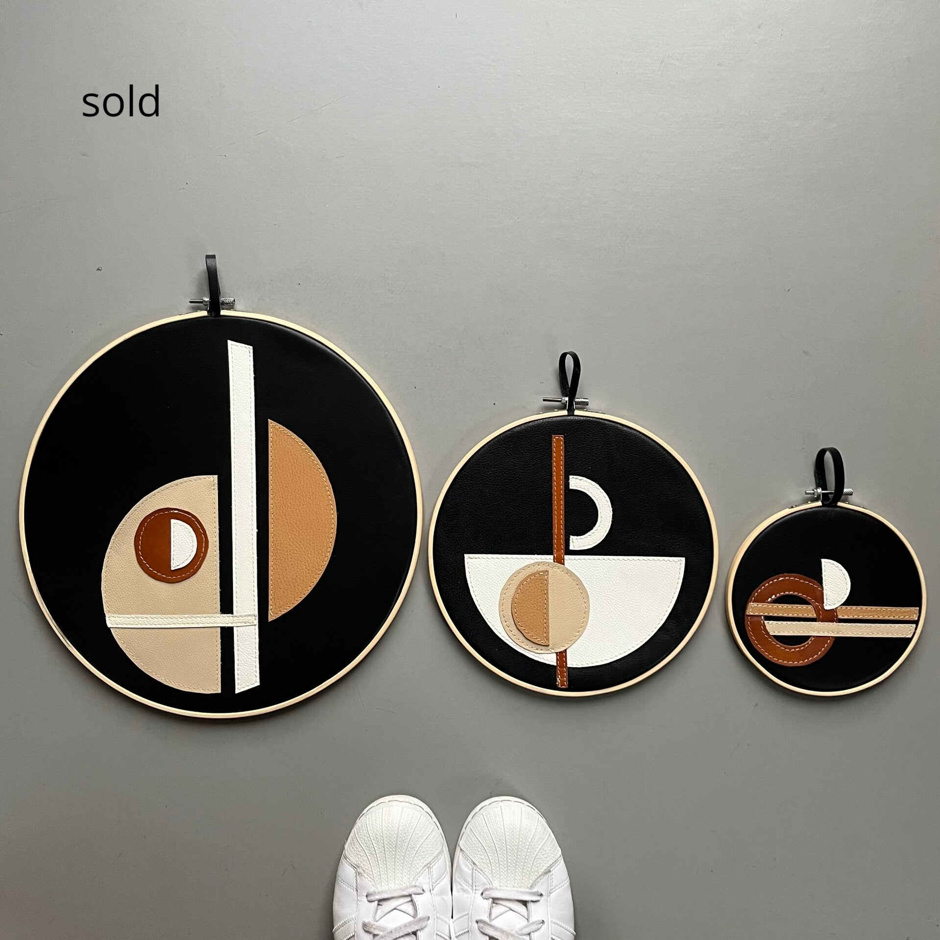 Leuke wanddecoratie van upcycledleer.